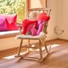 Die Kissenhülle hat einen nahtverdeckten Reißverschluss in Logo Farbe fuchsia und lässt sich abziehen und waschen. Einzigartig ist, dass das Inlett für die Kissenfüllung ebenfalls sehr aufwendig genäht wurde. Gefüllt ist das Inlett vegan mit silikonisierter Hohlfaser.